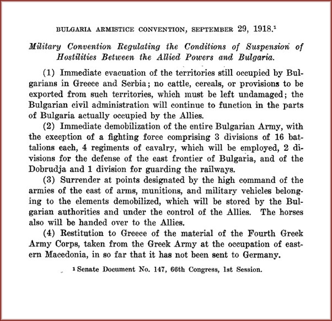 Текст капитулације Бугарске (Извор: Википедија)
