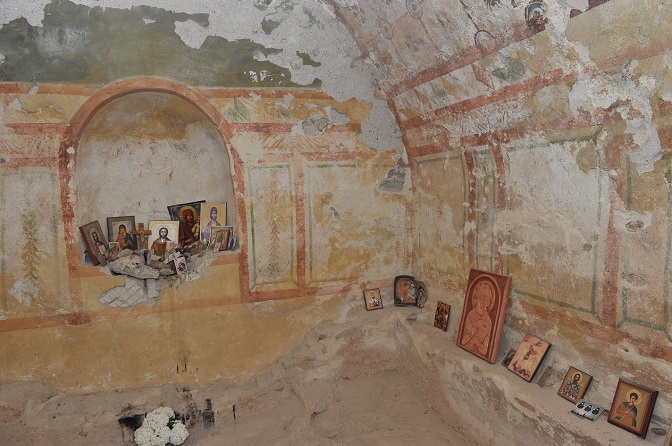 Унутрашњост мартиријума Св. Ермила и Стратоника у Брестовику (Извор: Фејсбук)