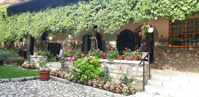 У то и моји туристи дођоше, те се ја лијепо оставих прислушкивања а прихватих посла, затурајући ово причу негдје у мали мозак, и уз њу менталну поруку: Видиш ти како су Ташлиханци били суревњиви према католичанству, а предусретљиви према исламу. И тако бих мислио и дан-данас, да се по истеку пар мјесеци не затекох поново, за жива хаџије, у његовом надгорњавању, овај пут с једним муслиманским хаџијом. У Проте Баковића сокаку, који избијајући право од Старе цркве повезује Титову улицу са Сарачима, била су тад два ресторана, сваки са столовима избаченим на сокак. Једном је власник била једна Српкиња, а ресторан се, мешчини[9], звао „Двери“; док је другом власник био Бошњак, и тај други се, свемсечини, звао „Под липом“. Сцена права балканска, сваки хаџија у својој кафани, за својим асталом, али окренути један према другоме, док им се столови додирују, па изгледа као да сједе заједно за једним великим столом, само су им два столњака мало распар. Ни стварно заједно, ни факат обашка. Ја сам нешто био кренуо својим послом, али како сам видио протагонисте, знао сам да ни прича неће много каснити. Данас је лако, данас човјек само извади паметни телефон, и може се правит’ блесав. Станеш као укопан насред џаде и пребиреш по сокоћалу. Али у онај вакат[10] је то било друкчије. Што рекао мој покојни стари: Без динара, оних пара. Елем, прислушкивање се морало „покривати“ везивањем патика, па сам и ја лијепо клекнуо насред сокака, развезао па превезао прво једну, а потом и другу пертлу, све слушајући разговор угодни народа хаџијског, гдје онај ташлихански хаџија зачикава овог муслиманског око новопуштене браде: