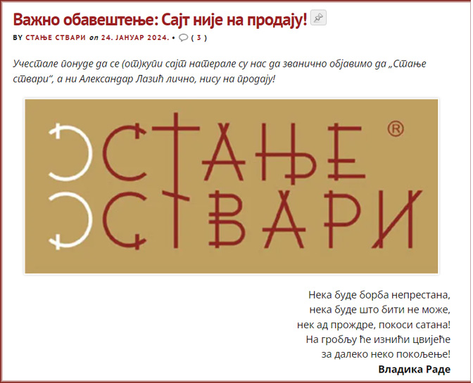 Htio sam da napisem ovom gospodinu Lazicu, da smanji malo dozivljaj, povodom njegoih pisanja da je „gasenje“ sajta, maltene ravno gubitku Kosova.