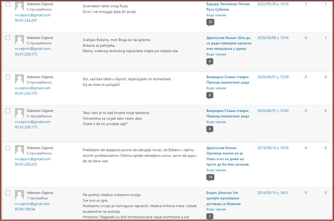 A sto se tice ovih kpija mojih komentara kod tebe, pa jesi Lazicu, objavljivao si mi nedje prije po nesto, pa si onda poceo sve sistematski da mi brises.