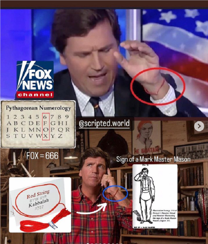 Један читалац послао нам је слике Карлсона и Путина на којима носе кабалистички црвени конац око руке: