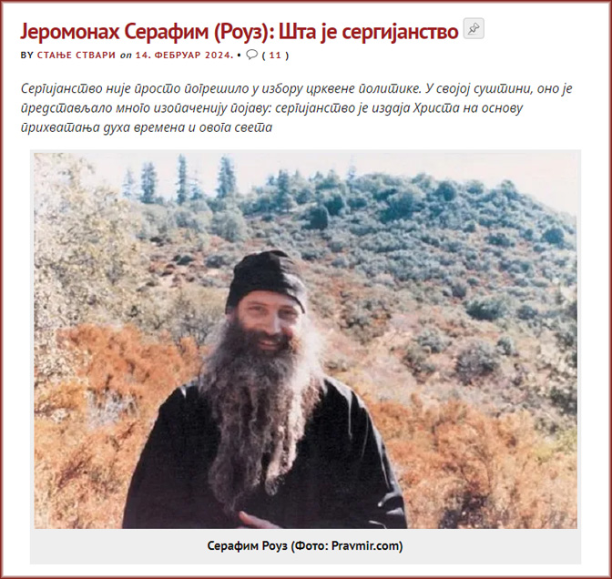 Да не заборавим сергијанство. Из предњих ставова мудрог почившег јеромонаха Серафима (Роуза), господина Војислава Мистовића из Црне Горе, да не наводим себе, излази јасна дефиниција сергијанства: