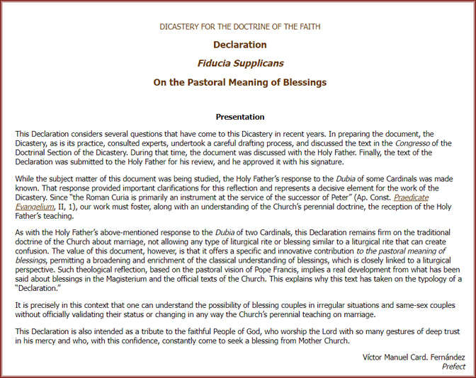 Декларација „Fiducia supplicans“ Римокатоличке цркве (Извор)