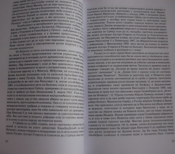 Србија ми је изгледала као мала башта у цвату, окружена са свих страна густом шумом, из које су сваког часа могли да се појаве душмани који би уништили овај благословени угао земљине кугле. Срби су ми говорили да живе од данас до сутра, под притиском страха од суседских напада. Када сам их питао зашто им је изглед престонице – у поређењу са бугарском престоницом тако неугледан, одговарали би да нема сврхе зидати велике зграде, јер ће их непријатељ раније или доцније порушити. Да ли ћемо издржати такво искушење – говорили су, питање је будућности и све ће зависити од мудрости наших политичара и од храбрости наше мале војске, од свега десет пешадијских и једне коњичке дивизије, које су све чиме се можемо супротставити огромним непријатељским снагама. Притом су се позивали на „Мајку Русију“, као на старију сестру која их у предстојећој борби за живот и слободу неће напустити. Моји отворенији саговорници, нови пријатељи, су подсећали да је у прошлости Русија давала предност Бугарској. Указивали су на Рајхштетски споразум на основу кога је Русија препуштала Србију утицају Аустроугарске; на Берлински уговор – када се српски делегат Ристић обратио руском представнику, грофу Шувалову са жалбом на занемаривање српских интереса у уговору, а као одговор је добио савет да се са тим протестом обрати аустроугарском делегату грофу Андрашију. Најзад – и на Мирцштетски споразум који су потписали гроф Ламсдорф и гроф Голуховски 1903. године, који је, како изгледа, стављао интересе подјармљеног словенског становништва Балканског полуострва под међународну, ледену и рачунџијску контролу – док се Русија одрицала од руководеће улоге која јој је припадала по праву крви и вере. Понекад је било тешко одговарати – нарочито оним саговорницима који нису веровали у спремност Русије да помогне, преувеличавајући њену моћ и тврдећи да је довољно да „она тресне ногом о под“, па да се сва Европа покори њеним жељама. Међу овим сумњичавим Србима могу именовати Мирослава Спалајковића, блиског и преданог сарадника Николе Пашића, који је рачунао на великодушност Русије и на њену покровитељску улогу у случају стварне опасности – како је то било и 1876. године, када је Србији запретило враћање у тешку прошлост. Одговарајући им, ја нисам могао а да не истакнем колебљиву политику Обреновића – краља Милана и краља Александра, који нису – можда из формалних разлога имали поверења у преданост Русије општесловенским идеалима и солидарности. Русија није могла да ризикује своје и општесловенске интересе, и због тога је била приморана да избегава све оштре конфликте изазване другостепеним факторима. Међутим, када је политика непријатељска у односу по њу, угрожавала самосталност неког балканског народа, она се – колико се може судити по историјским чињеницама, одлучно лаћала оружја да их заштити.