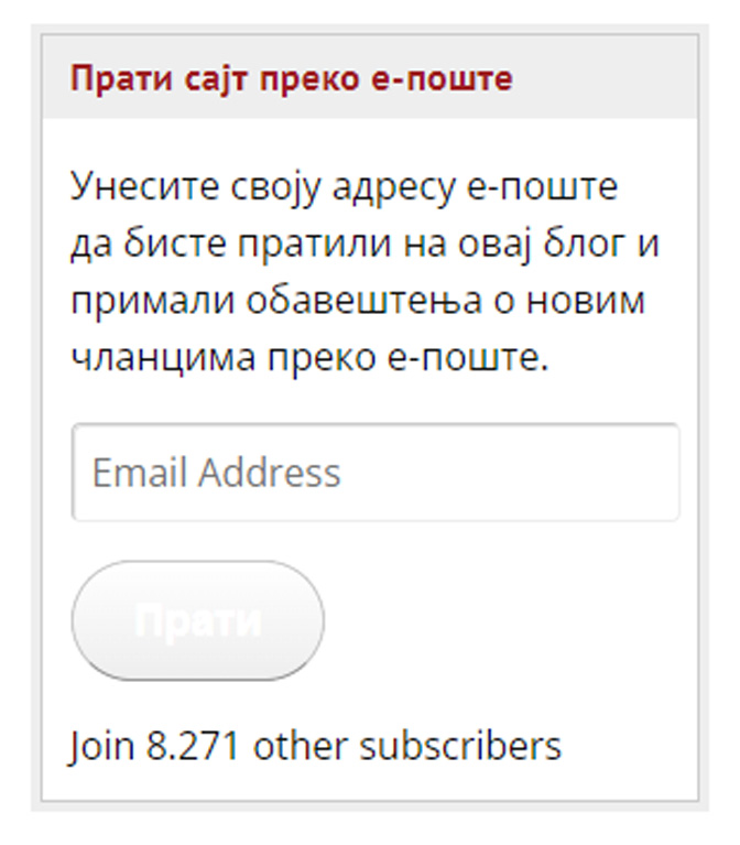 Форма у десној колони где се можете пријавити за праћење блога преко мејла