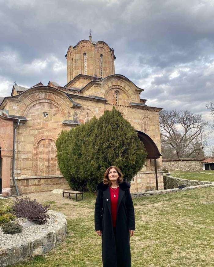 Радмила Кнежевић испред ман. Св. Ђорђа у Старом Нагоричану (Извор: Светигора)