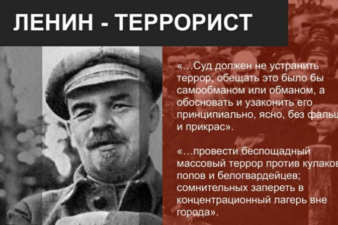 Поседујући велике стваралачке способности и меморију, Лењин их је ставио у службу антируске идеје рушења руског државног система. До почетка ХХ века, он је већ био потпуно изграђен тип антируског фанатика, спреман да употреби сва средства, а пре свега терор, да оствари своје циљеве. Већ 1901. године он је потпуно дефинисано изјавио: „Ми се у принципу никада нисмо одрекли и не можемо да се одрекнемо терора“ (Ленин В. И. ПСС. 4-е изд. Т. 36. С. 316).