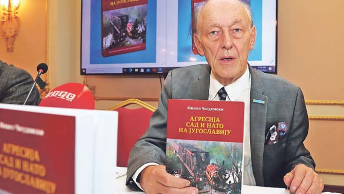 Мишел Чосудовски са својом књигом о НАТО агресији (Фото: Анђелко Васиљевић)