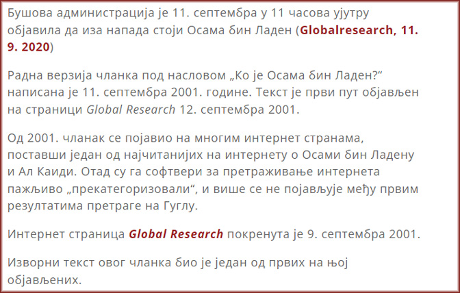„Мишел Чосудовски, професор економије на Универзитету у Отави, подробно је срочио лажни приказ ’ОВКʻ у свом тексту ’Организовани криминал финансира борце за слободуʻ, који кружи по интернету. Пун полуистина, претпоставки и инсинуација да се ’ОВКʻ наводно финансира новцем од дроге, текст Чосудовског настоји да дискредитује ’ОВКʻ као аутентичан ослободилачки покрет који представља тежње потлачене албанске већине…