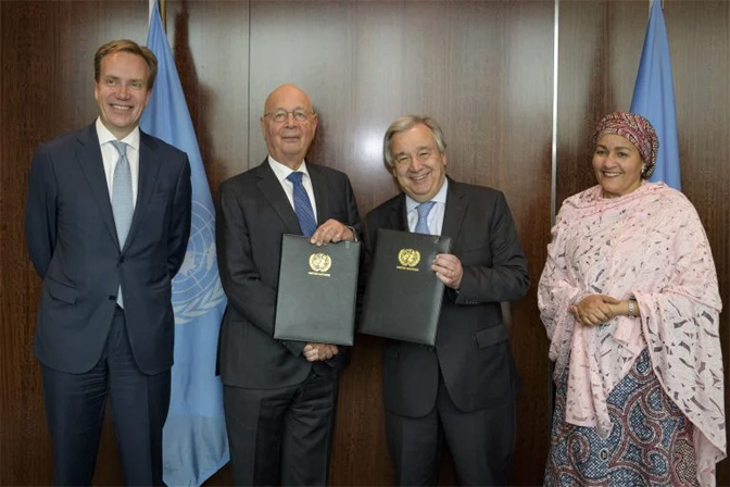 Године 2019. на састанку у Уједињеним нацијама између Генералног секретара Антонија Гутереша и извршног директора Свјетског економског форума (СЕФ) Клауса Шваба потписано је стратешко партнерство за „убрзавање примјене Програма за одрживи развој до 2030. године“.