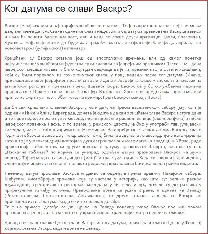 Васкрс ( по ЈУЛИЈАНСКОМ КАЛЕНДАРУ), о чему врло сликовито говори