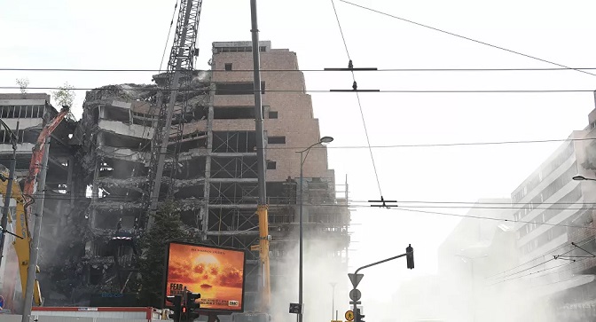И сада, уместо закључка, постављамо питање: ако ништа нисмо успели да срушимо да ли смо кадри да сачувамо свете остатке онога што су нам други срушили? На пример, зграду Генералштаба војске Србије, ремек дело архитекте Николе Добровића – чије нас име подсећа да би пре сваке одлуке морали добро да размислимо, да не дозволимо неком новом Филипу Американском да ће, ако уз нашу дозволу дође у Београд, сада под именом Кушнер, остатке рушевине сравнити са земљом и на том светом месту изградити велелепни облакодерски хотел из чијих ће апартмана гости моћи да уживају са погледом на Београд на води, а они далековидији, чак и са погледом на суседно иностранство: Срем, Банат и Бачку.
