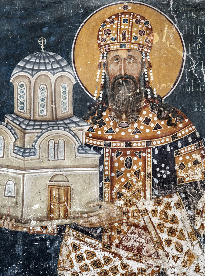 Свети краљ Милутин, фреска у Краљевој цркви у Студеници, око 1314. (Извор: Ман. Студеница)