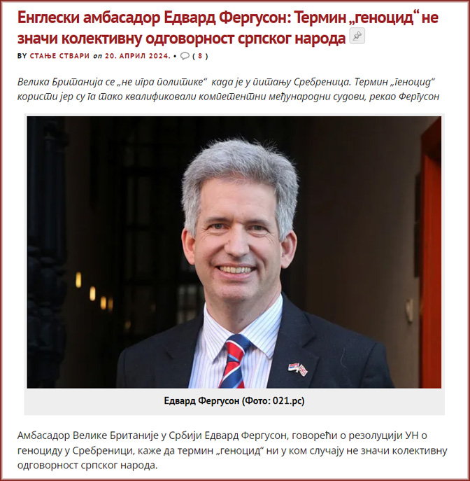 Тако ми и његовог „земљака”, наше горе (сувог) листа – британског војног аташеа у Србији (пуков)Ника Илића, који је сачекао глобално закључавање па да широм Србије изложбама фотографија распирује истину о утицају англиканске етике на српске цивилне циљеве (https://stanjestvari.com/2021/01/29/izlozba-britanci-i-drugi-svetski-rat-u-jugoslaviji/), вероватно подразумевајући да смо о утицају римокатоличке и протестантске добрано упознати.