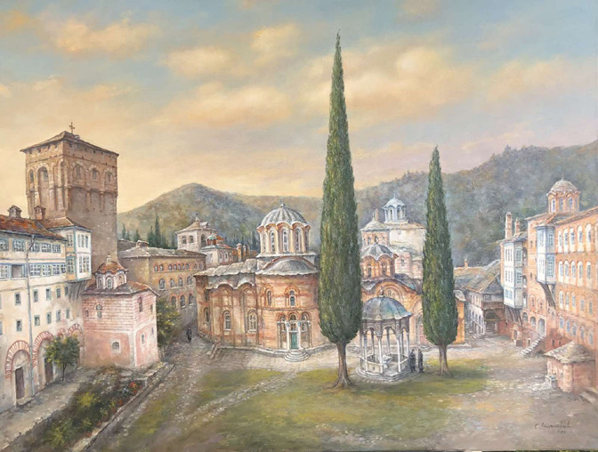 Славољуб Мирковић, Хиландар, уље на платну, 2023. (Извор: Стање ствари)