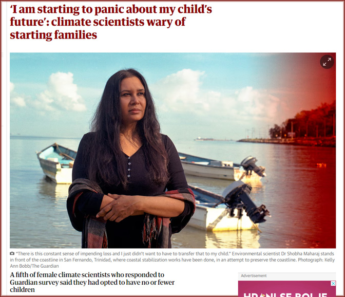 Није само превелика популација забринула научнике. Професорка Реџина Родригез, океанограф на Универзитету Света Катарина у Бразилу одлучила је да нема децу јер страхује за њихову будућност услед промена климе.
