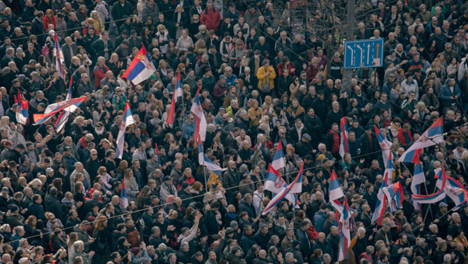 Протест у јануару 2024. у Београду након ванредних парламентарних и београдских избора (Фото: Getty/Vladimir Zivojinovic)