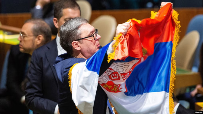 „Председник Србије Александар Вучић јавно је одбио позив председника Русије Владимира Путина да учествује на самиту БРИКС-а у Казању. Рекао је да има много других важних обавеза. Вучић је, намерно шаљивим тоном, рекао да је у овом тренутку „у плану” шеснаест састанака са шефовима других држава и влада на маргинама Генералне скупштине УН.