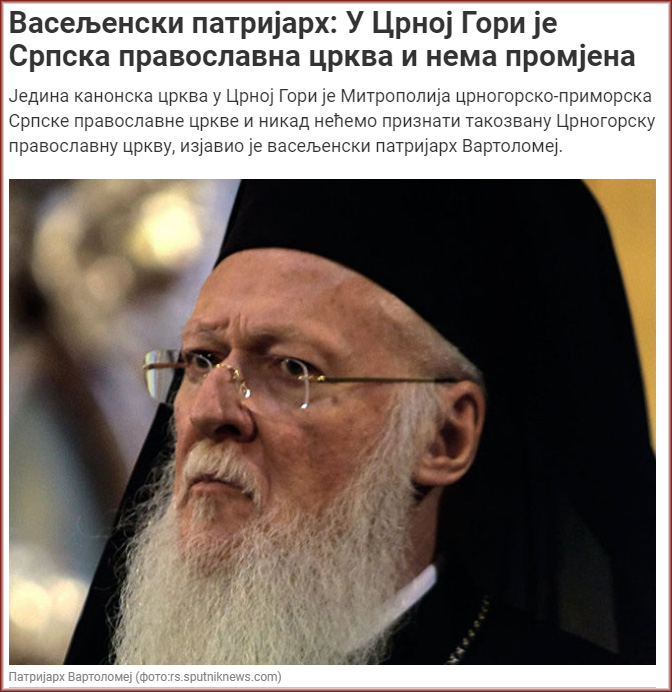 И ево, неколико година касније појавили су се извесни „контакти“ с црногорским расколницима. Тако је Фанар по ко зна који пут показао да се у његове речи и изјаве не сме имати поверења. Као у случају са УПЦ, кад је патријарх Вартоломеј више пута тврдио да за јединог канонског поглавара украјинског православља признаје митрополита Онуфрија, али је после тога упао на туђу канонску територију и дао је аутокефалност украјинским расколницима.