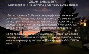 Чудно је како сви ми тек на самрти спознамо праву вредност живота и схватимо колико је живот леп и чудесан. Тако смо и ми – Срби, заточени у „енклавe” спознали праву вредност слободе, тек кад смо је изгубили Кратка прича, написана … Настави са читањем Дејан Баљошевић: Из „енклаве“ се небо боље види