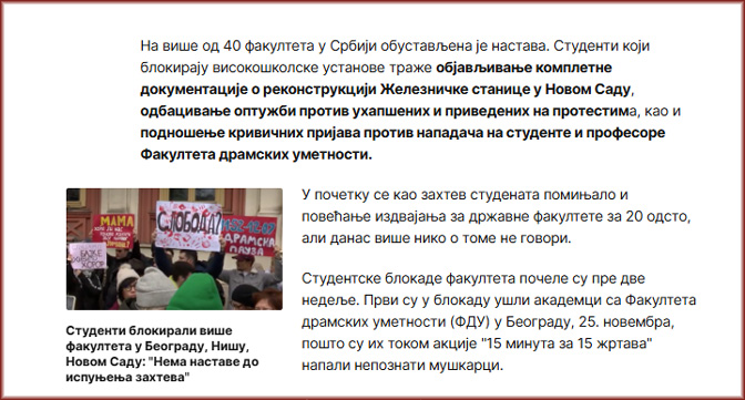 Почетни студентски захтеви (Извор: РТ Балкан)