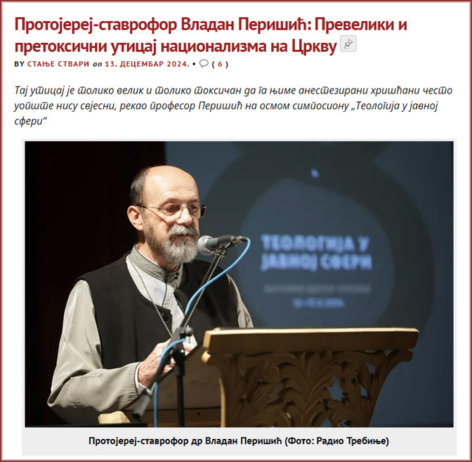 Протојереј-ставрофор Владан Перишић: Превелики и претоксични утицај национализма на Цркву