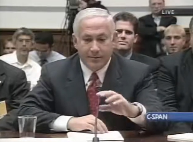 Говорећи у америчком Конгресу 12. септембра 2002. на тему америчке инвазије Ирака, позван као грађанин у својству некадашњег предсједника владе Израела (1996-1999), Бенјамин Нетанијаху је изјавио: