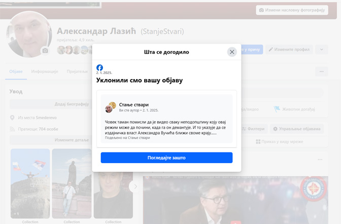 Неколико минута по постављању објаве о овом тексту на Фејсбуку, стигла је забрана!