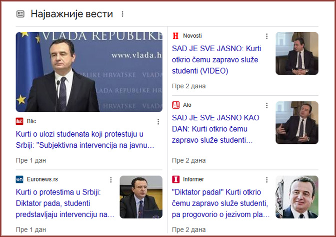 И немојте ми причати да Курти подржава студенте. Не верујем да их заиста подржава. Јер, миц по миц Курти је све добио од АВ што жели. Ако је АВ успео да се договори са Куртијем да му преда Српство на КиМ онако тихо и еутаназијски, зашто би му био проблем да замоли Куртија да преко Твитера крене да подржава студенте? То му дође као савршени изговор да сви који нису за АВ, на неки начин јесу за Куртија. Да, да – како да не. Исто то ради са појединим опскурним ликовима из Загреба и Сарајева. Углавном, човеку који изда КиМ тако лукаво, тако лицемерно и тако безобразно – не верујем ни ако ми каже да се зовем Марко, а камоли нешто друго.