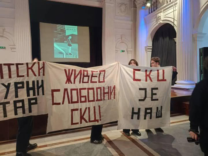 Као неко ко од почетка подржава студентске захтеве и борбу да се решимо овог клана, који управља уз помоћ колонизатора, могу да кажем да сам вечерас у СКЦ видео упад бољшевика. Не одређује некога то да ли је студент или је радник, а ако одређује, онда су студенти избацили раднике, уметнике и друге студенте (било је и студената који су у кафеу играли друштвене игре), гурали несрећног старијег портира, упали у портирницу у којој су нешто претурали. Покушао је један и да ме изгура.