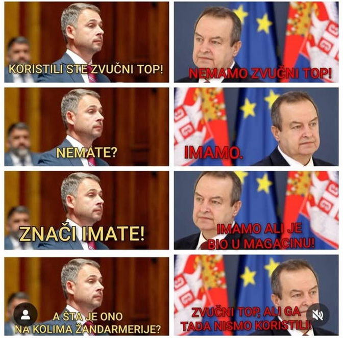 Шалу на страну, звучни топ који полиција нема јер га има, набављен је за мандата Вулина, и он је заправо поклон за усељење чувене тетке из Канаде, која није могла да се одлучи између њега и усисивача, па је купила и поклонила оба.