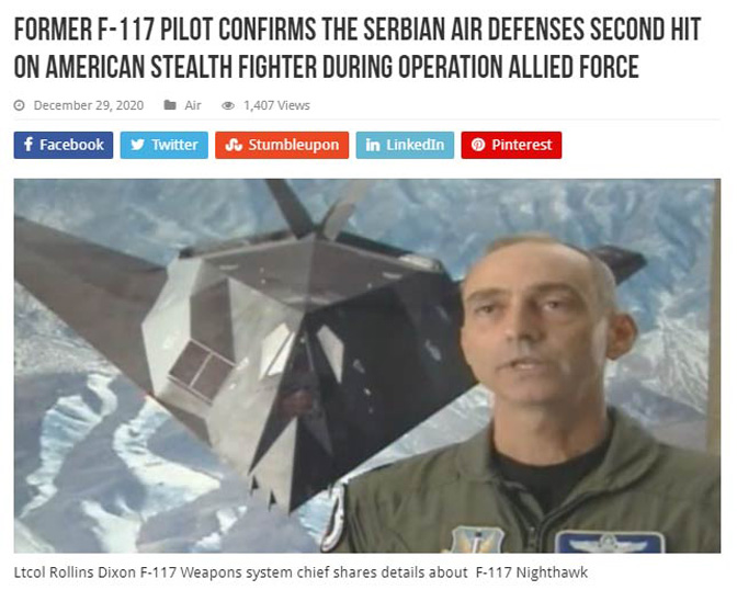 Сведочанство је објављено на сајту „Fighter Jets World”, а информације је овај пут поделио са јавношћу потпуковник Ролинс Диксон (Rollins Dixon), тадашњи „шеф система наоружања” за F-117.