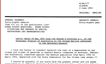 Примерак Меморандума Тужилаштво за ратне злочине је недавно пронашло у документацији државног Комитета СФРЈ, али само на енглеском Република Србија ЈАВНО ТУЖИЛАШТВО ЗА РАТНЕ ЗЛОЧИНЕ ВЈТ Загорка Доловац 11040 БЕОГРАД – Ул. Устаничка 29 Захтев за приступ информацијама од јавног … Настави са читањем Адвокатска канцеларија Радић: Да ли може да се објави „Меморандум о ратним злочинима и геноциду у Источној Босни против Срба од априла 1992. до априла 1993“?
