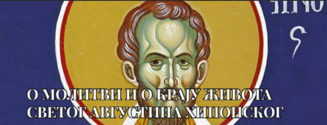 Када је, пак, реч о крају нашег живота који је могуће предосетити, али само по милости Божијој, навешћу како је изгледао крај једног великог оца и учитеља цркве Христове. Реч је о Светом Блаженом Августину Хипонском који је, на једном месту, приметио: „У Светом Писму Бог разговара са нама, а у молитви ми разговарамо са њим.“[11]