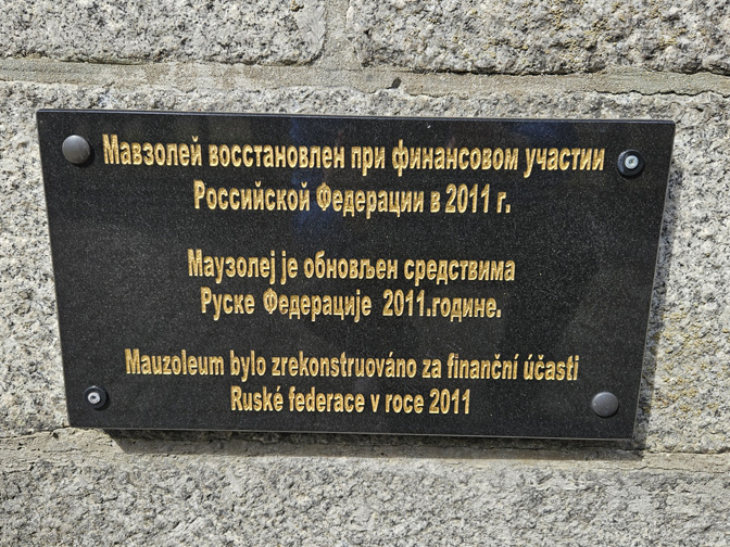 Процес обнове треба да буде комплетан а то је да се исправи и натпис где пише да је, у духу оног времена, сахрањено 7400 Југословена. Страдали су искључиво Срби и у чешким архивама постоји попис са именима и местом одакле су били и то је нешто што треба да буде видљиво такође јер страдали су тачно одређени људи, због тога што су били то што су били и против чега и кога су били. Није ред да остану бројеви, треба да стоје њихова имена и генерације чак и ако не буде могућности да се „југословенска” табла скине или премести.