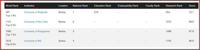Ранг листа универзитета у Србији (Извор)