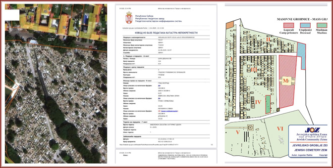 - да су током Другог светског рата жртве из разних логора укопаване на двадесет три локације у оквиру Земунског гробља, да је после рата извршена ексхумација и сахрањивање у једну масовну гробницу на Јеврејском гробљу, која је сада означена при Служби за катастар непокретности Земун као катастарска парцела број 416;