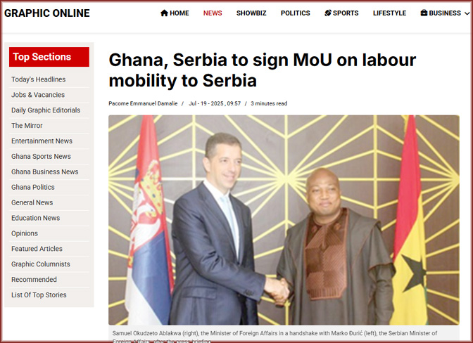 Ево извода из вести о боравку Ђурића у Гани са линковима који воде до званичног сајта Министарства.