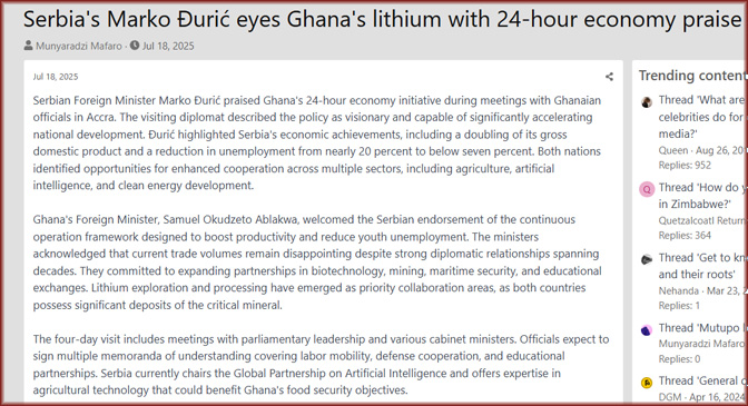 Да је током Ђурићеве посете несумњиво било речи и о литијуму, иако српско министарство то није објавило, потврђује и чланак портала Хералд Гана који је навео речи министра Аблакве: