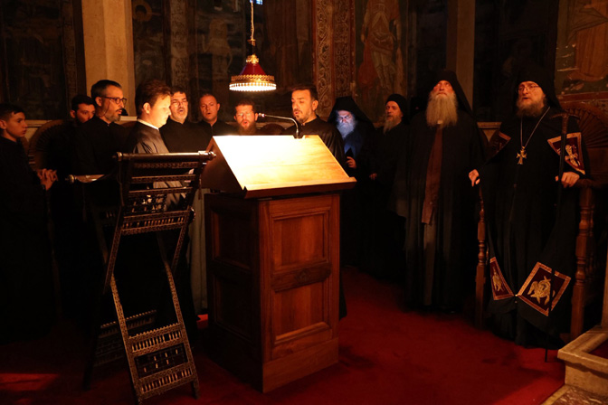Десну пјевницу предводио проф. Георгије Карајанакис са члановима „Хорос Ангеликос” из Ларисе, заједно српским појцима, док су лијеву пјевницу чинили чланови византијског хора „Јован Кукузељ” из Тиране