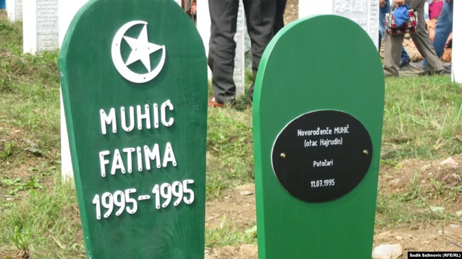 Мртворођена беба Фатима Мухић сахрањена је као жртва геноцида у Меморијалном центру Поточари 11. јула 2013.