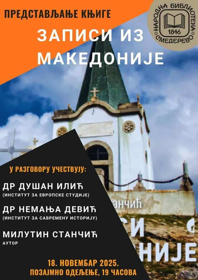 У Народној библиотеци Смедерево је представљена књига путописних текстова и репортажа „Записи из Македоније“ Милутина Станчића.