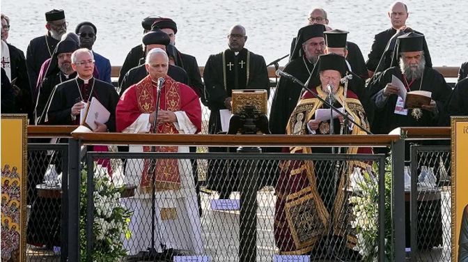 Папа Лав XIV и патријарх Вартоломеј у некадашњој Никеји, 28. новембар 2025. (Фото: Ројтерс)