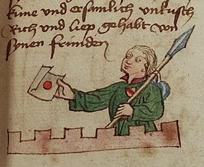 У повељи краља Милутина манастиру Светог Ђорђа код Скопља каже се да су манастирски људи ослобођени обавезе гласа носити. Послове гласоноша и писмоноша обављали су људи који су обавезом били везани за земљу или властелина. Све средњовековне ликовне представе писмоноша и гласоноша углавном приказују младиће у путничкој одећи на којој се налази грб или знак властелина који га шаље. Такође, копље је увек приказано, пре свега као оружје за одбрану од разбојника.