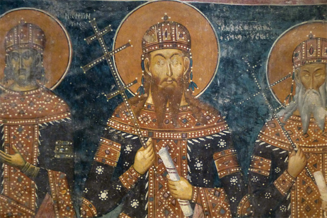 Цар Урош (у средини), десно краљ Вукашин, лево Свети цар Константин (Фото: Јасмина С. Ћирић)