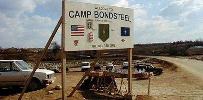 Табла на улазу у америчку базу Бондстил на Косову и Метохији