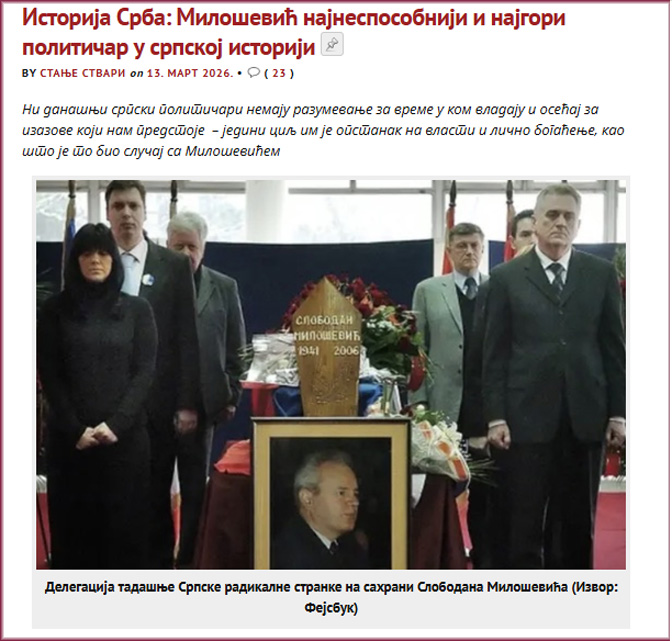 Поводом текста „Историја Срба: Милошевић најнеспособнији и најгори политичар у српској историји“