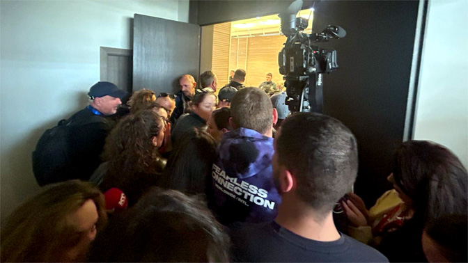 Ту су и двојица полицајаца који су били рањени у Бањској, заједно са својим адвокатима, јавља Ким.