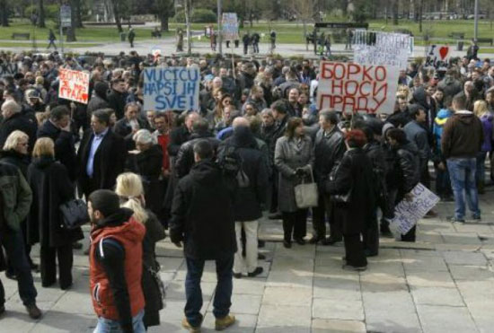 Београд, 11. 11. 2015 (С*ање ствари) – Зависно удружење пензионера „Вучић и деда“ протестовало је јер им није омогућено, као просветарима, да повећање пензија врате у буџет!